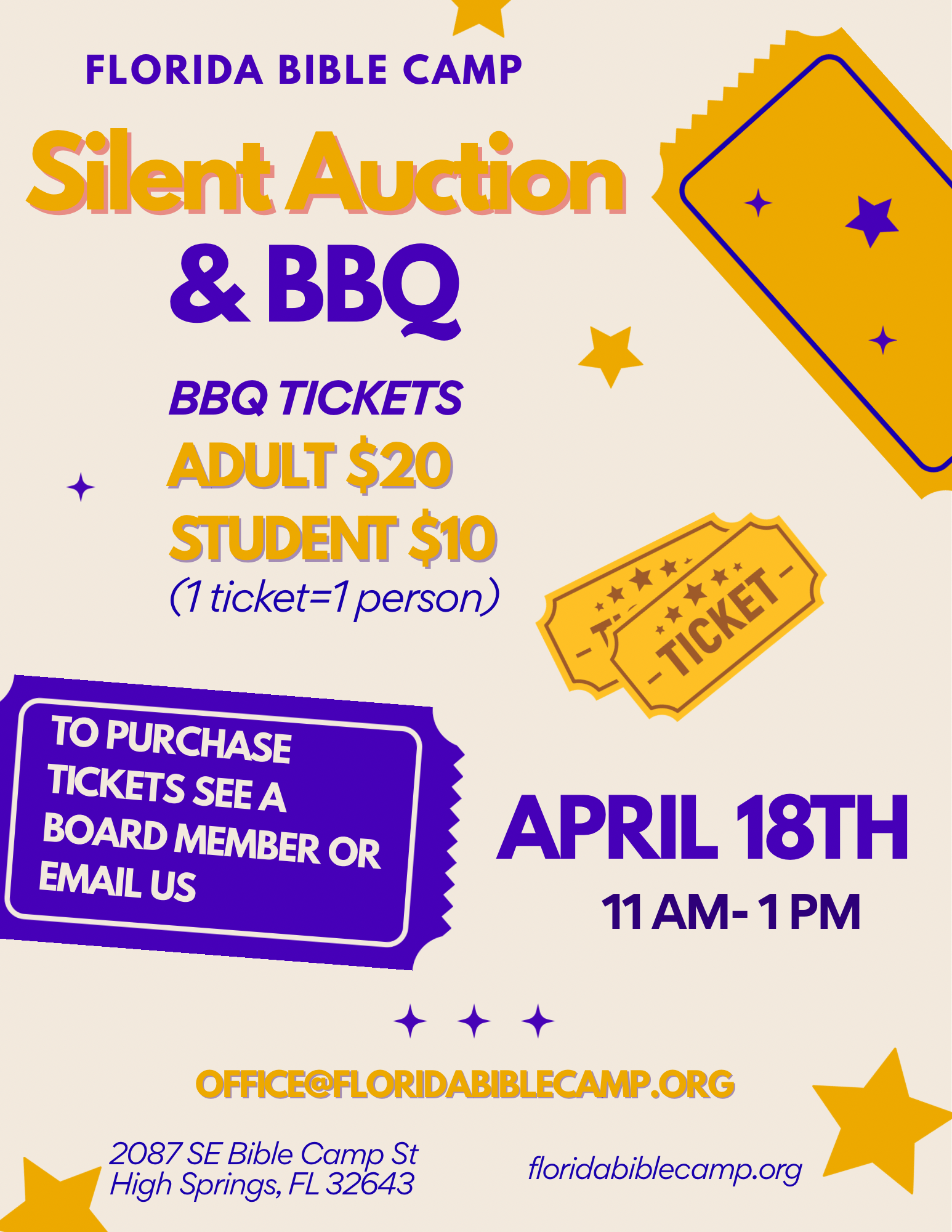 Learn MoreDuring the rest of the year, when camp is not in session, Florida Bible Camp's awesome facilities are available to be rented out for retreats, family get-togethers, events etc. Beautiful location and affordable rates make FBC the right choice for your next event.